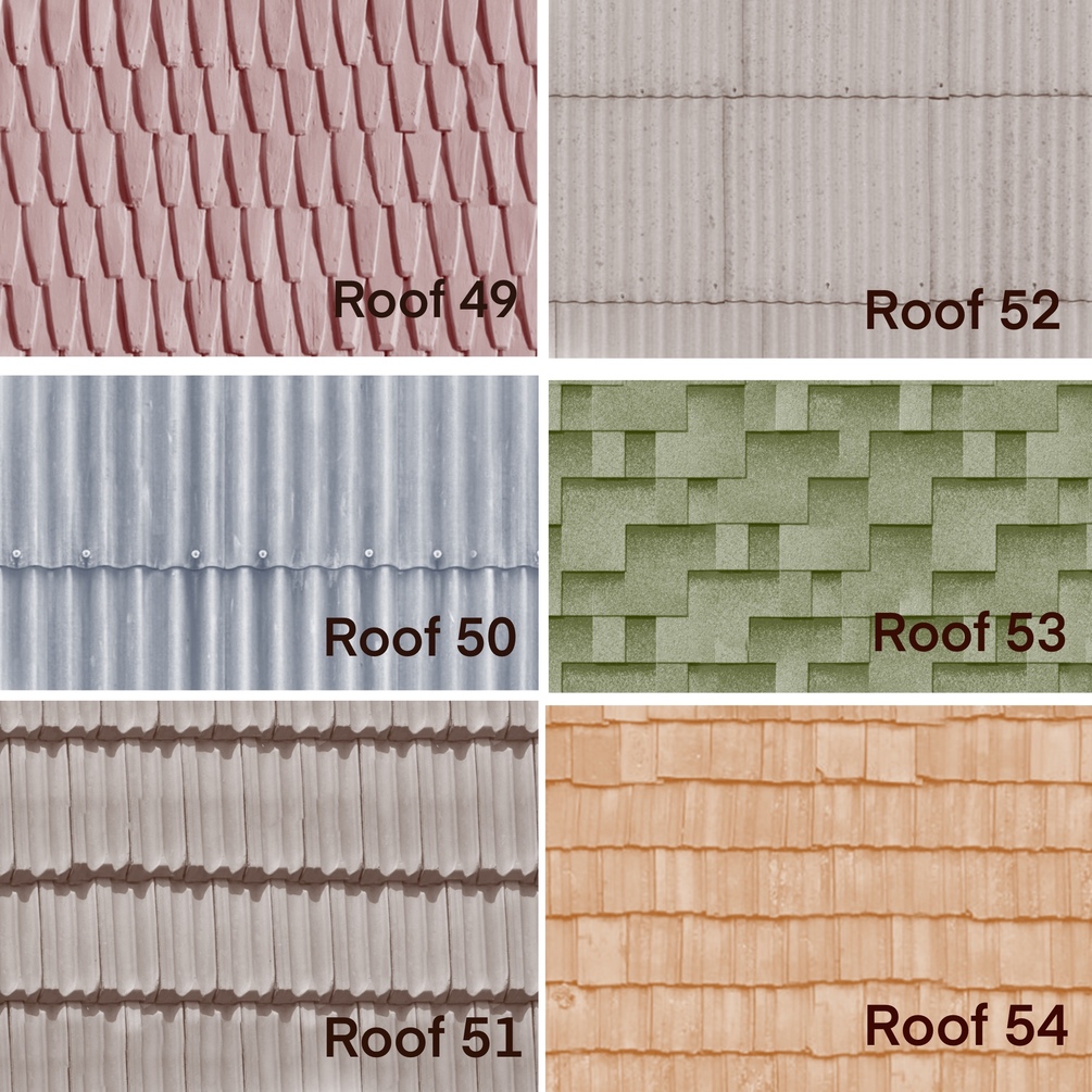 A set of 54 brushes for creating Roof seamless pattern in Procreate.
